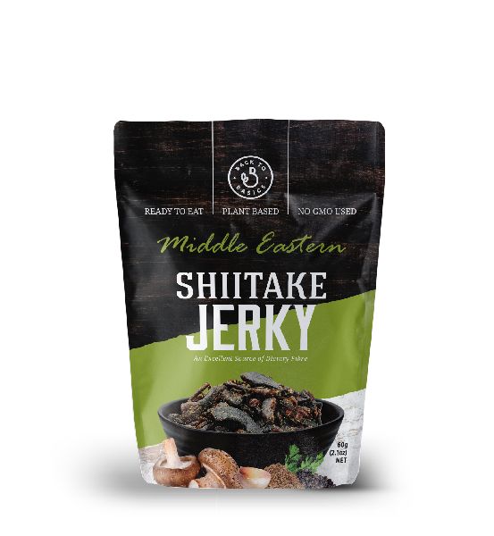 Shiitake jerky is ready to eat snack that is plant based and an excellent source of dietary fibre. It contains no GMO ingredients, no added MSG no artificial colours or preservatives.