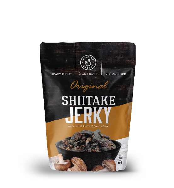 Shiitake jerky is ready to eat snack that is plant based and an excellent source of dietary fibre. It contains no GMO ingredients, no added MSG no artificial colours or preservatives.