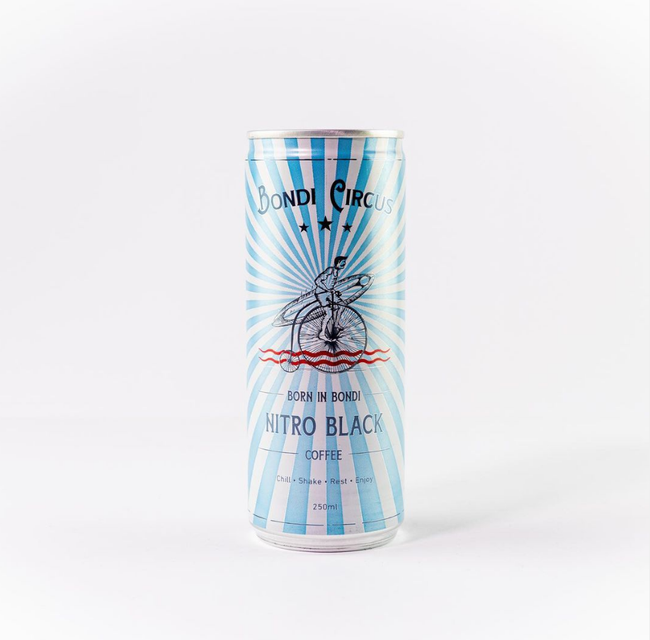 Whether you’re a surfer on a penny -farthing or you’re just kicking back watching all the Bondi characters pass you by, our Nitro Black is sure to delight. We take our delicious freshly brewed coffee, infuse it with insert nitrogen (which imparts no flavours but gives it a creamy mouthfeel) then seal it up. It’s as simple as that. All you need to shake the can vigorously, rest it for 20 secs, crack it open (watch the pop0 and enjob the cascading waves of refreshment! Did we mention it’s dairy free and with no added sugar!