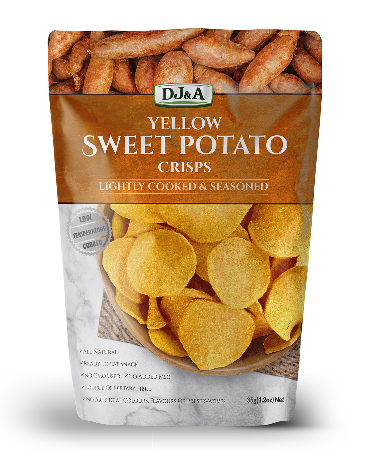 Home / Confectionery & Snacks / Chips / DJ&A Yellow Sweet Potato Crisps DJ&A Yellow Sweet Potato Crisps SKU: DJ-208-10-CVSWY35 Category: Chips Tag: DJ&A Description Additional information Description Yellow Sweet Potato Crisps 35g ctn 16 Ingredients: Yellow Sweet Potato (85%), Vegetable Oil, Maltose, Sea Salt, Yeast Extract, Spices, Natural Flavours. Additional information Weight 35 g Related products DJ&A Crispy Fruit Keogh Chips Back To Basic Vegetable Chips Simply7