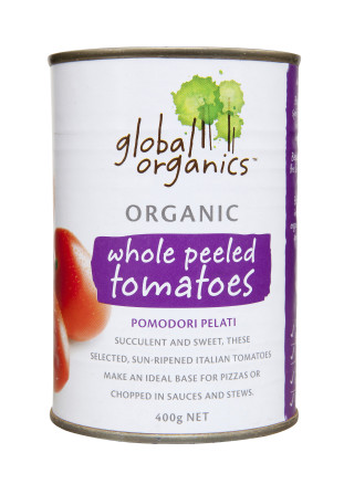 Global Organic Whole Peeled Tomatoes are succulent and sweet, these selected, sun-ripened Italian tomatoes make an ideal base for pizzas or chopped in sauces and stews.