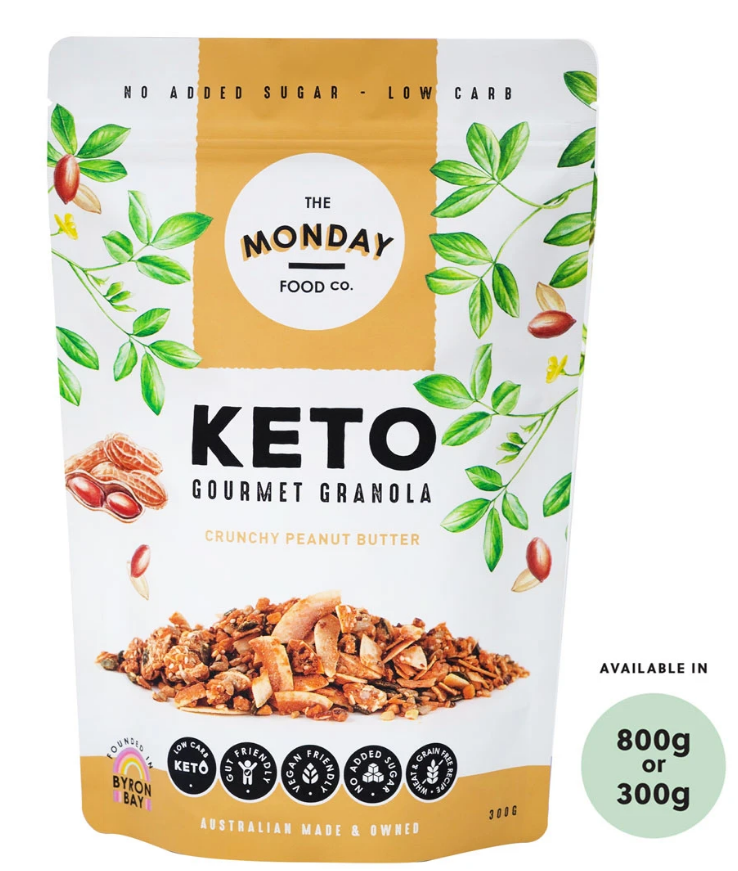 Our Crunchy Peanut Butter granola is the first in the range of our new Keto Granola flavours. It combines sweet & salty in a nutty burst of flavours, made using Byron Bay Smooth (no added sugar) Peanut Butter.