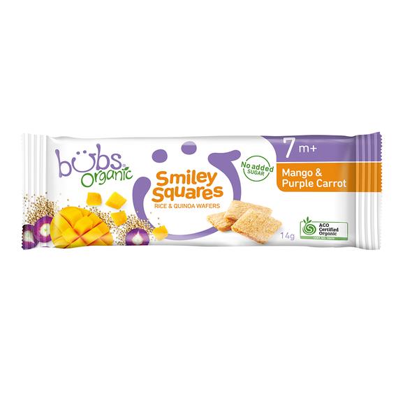 Organic Bubs Snacks – Smiley Squares Mango and Purple Carrot (7m+)