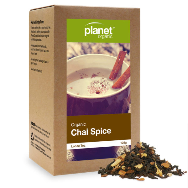Planet Organic Spice Tea is a blend of certified organic black tea and organic spices. A lively, sparkling tea in the true traditions of the orient.