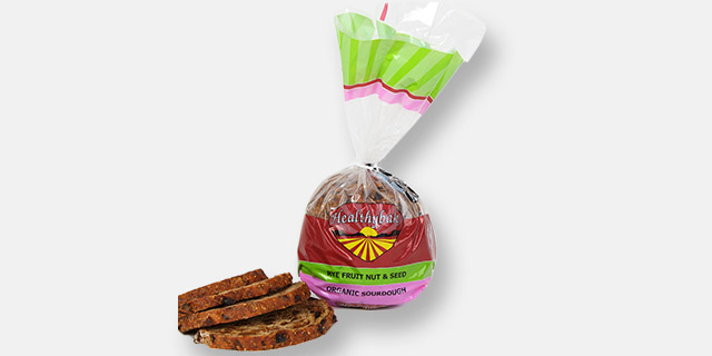 Ingredients: Sultanas (25%), Filtered Water, Certified Organic Rye Flour, Sunflower Kernels (5%), Sesame Seed (5%), Dates (4%), Apricots (3%), Certified Organic Oat Bran, Olive Oil, Peaches (1%), Pears (1%), Almonds (1%), Gluten, Sea Salt, Sour Dough Culture (Contains Acidophilus & Bifidus).