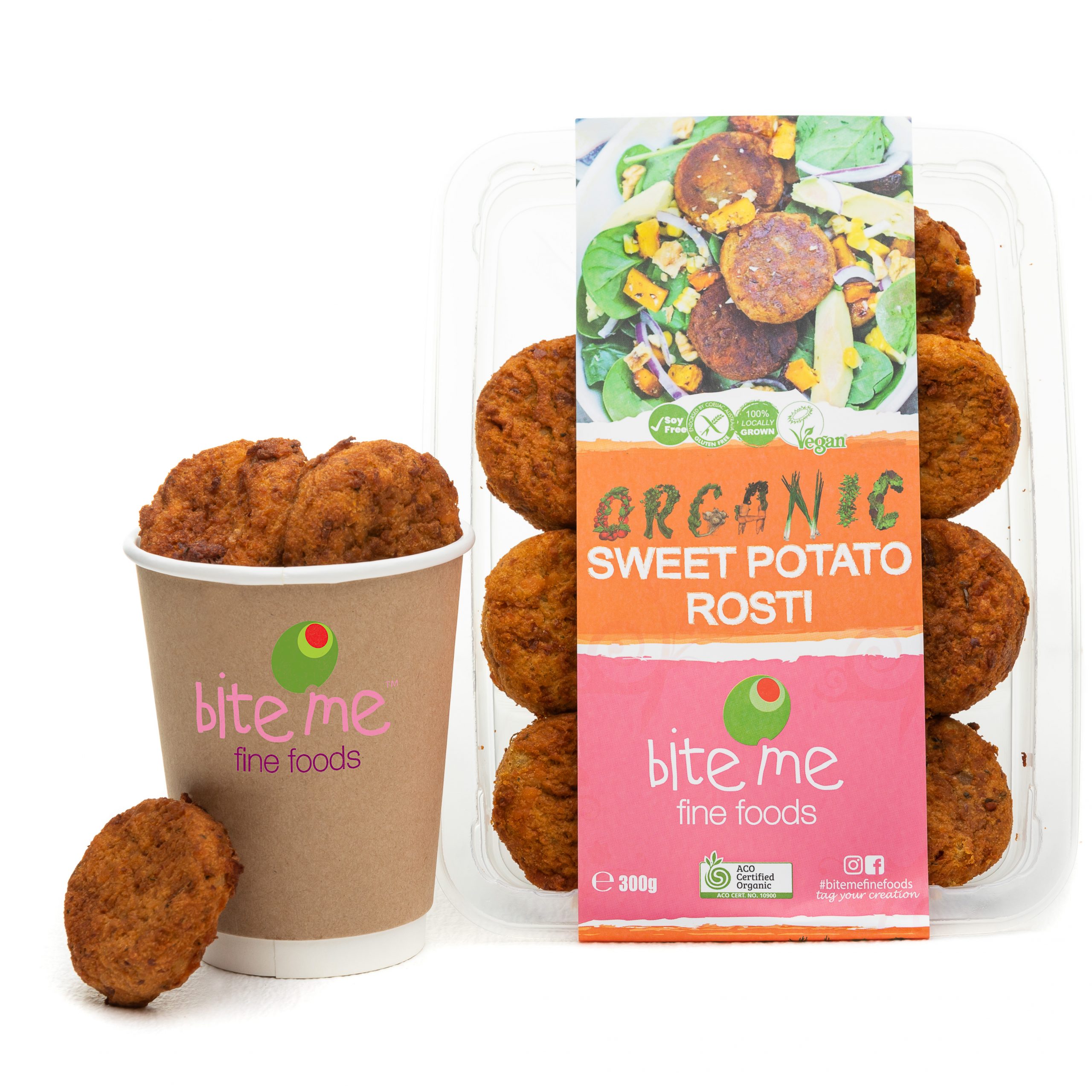 Our Sweet Potato Rostis are bursting with flavour! They contain pumpkin, sweet potato, capsicum and carrot, which are excellent sources of carotenoids and have an antioxidant effect on the body. Free from anything artificial, and made with or love out of certified organic locally grown produce. Bite Me Sweet Potato Rostis are a nutritious addition to a healthy brunch, dinner or snack.
